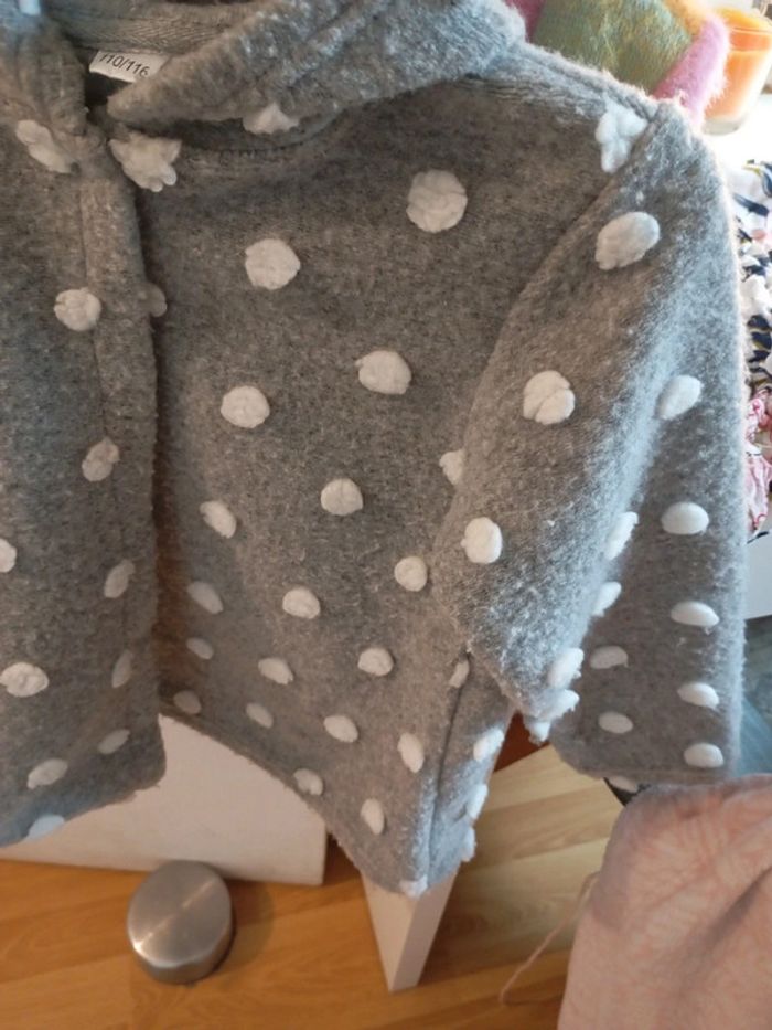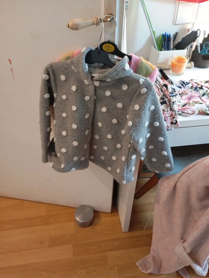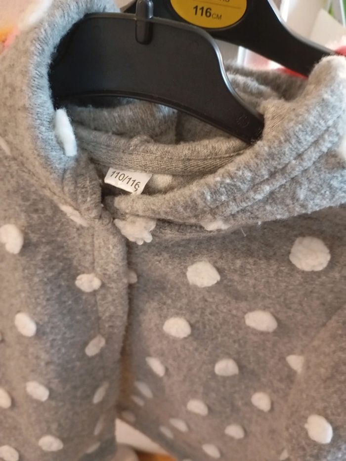 Avec capuche Grise avec petite boule blanche État neuf ma fille ne veut jamais la mettre lol