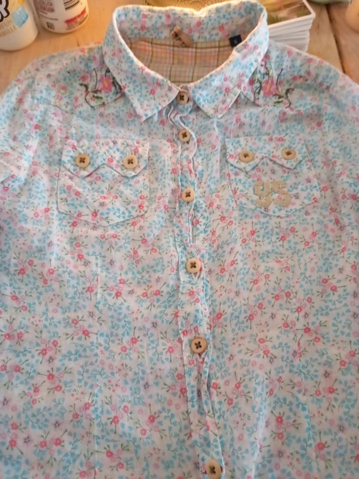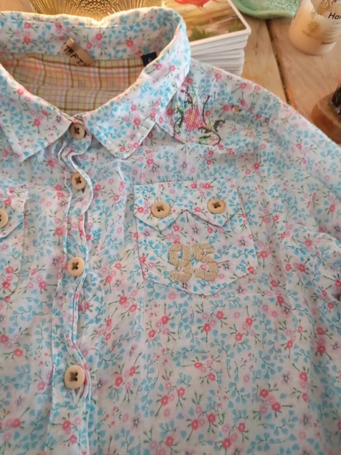 En tbe Boutonnière en bois Liberty bleu rose Manches longues