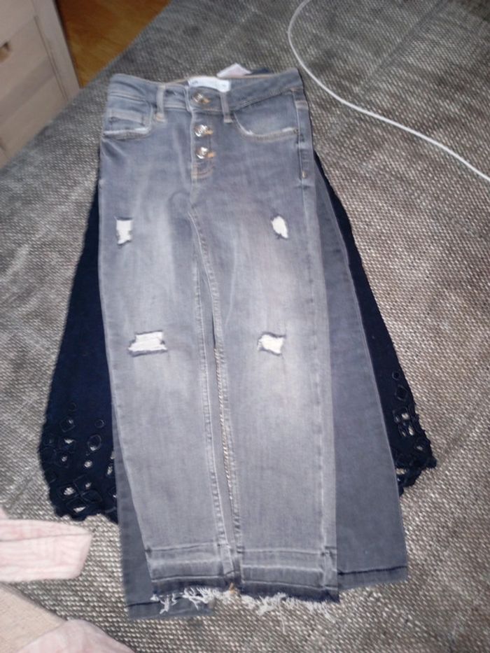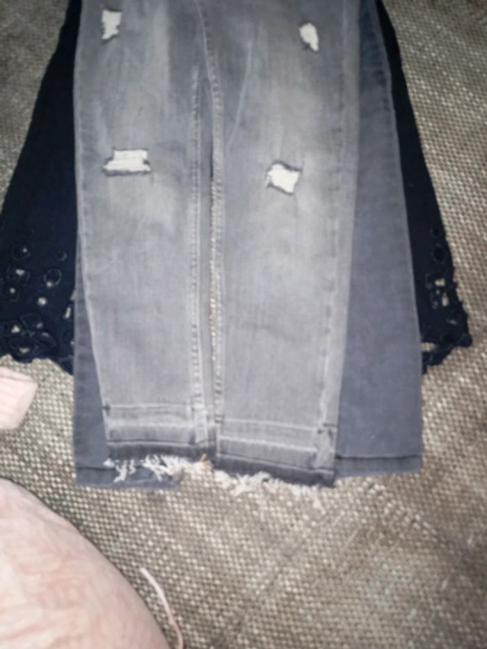 Deux pantalon Zara jean destroy comme neuf Jean leggings Pantalon noir avec broderie anglaise