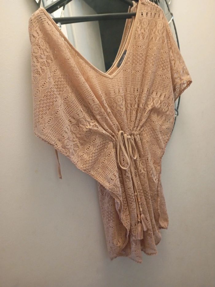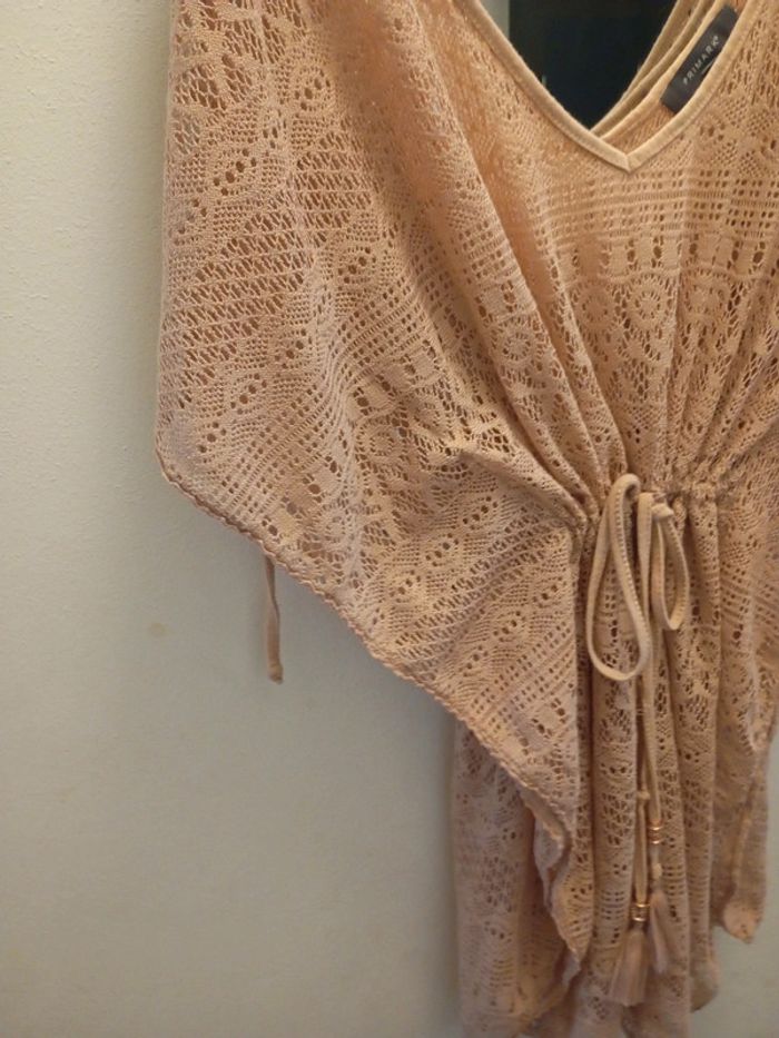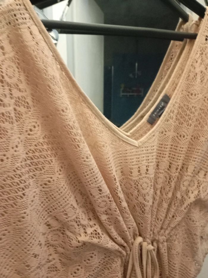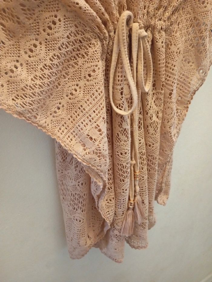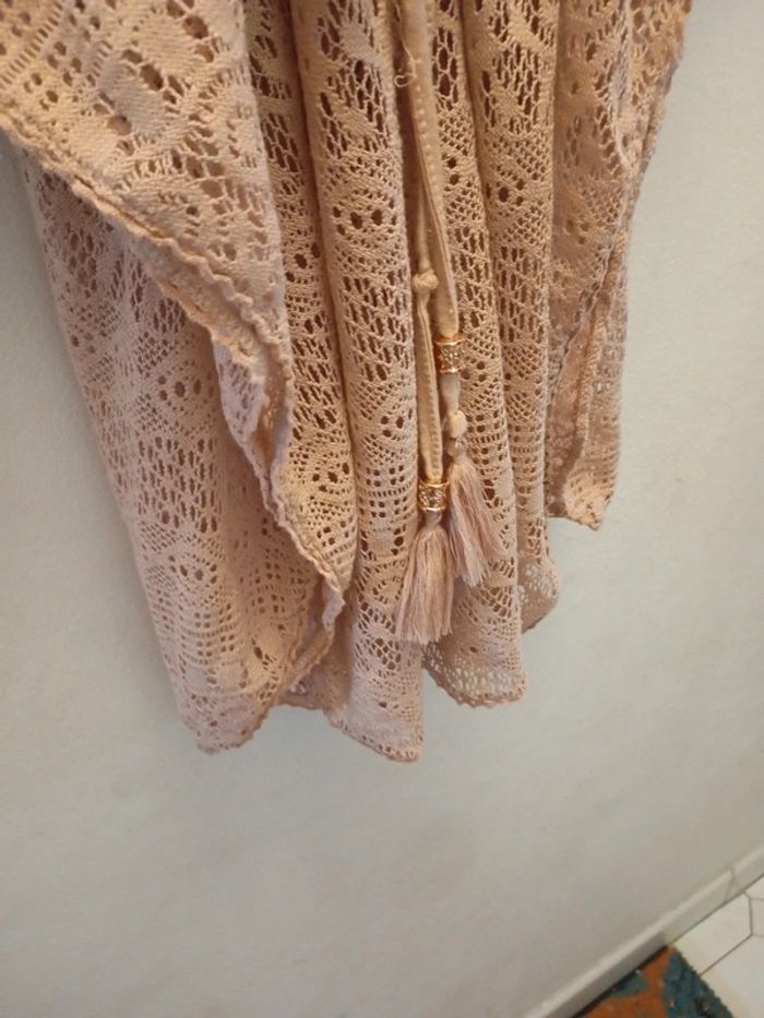Effet dentelle rose Se resserre a la taille Pompon au bout Manches ouverte