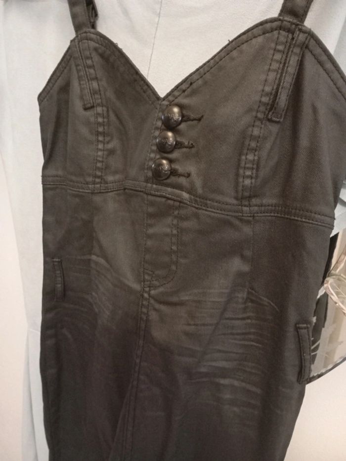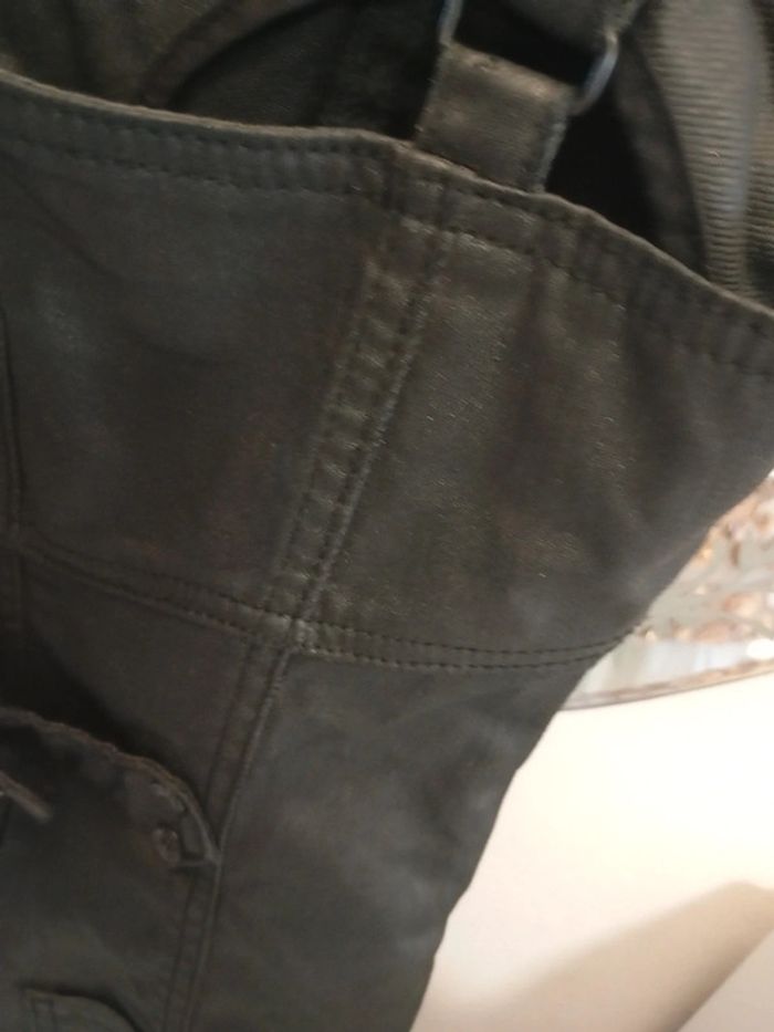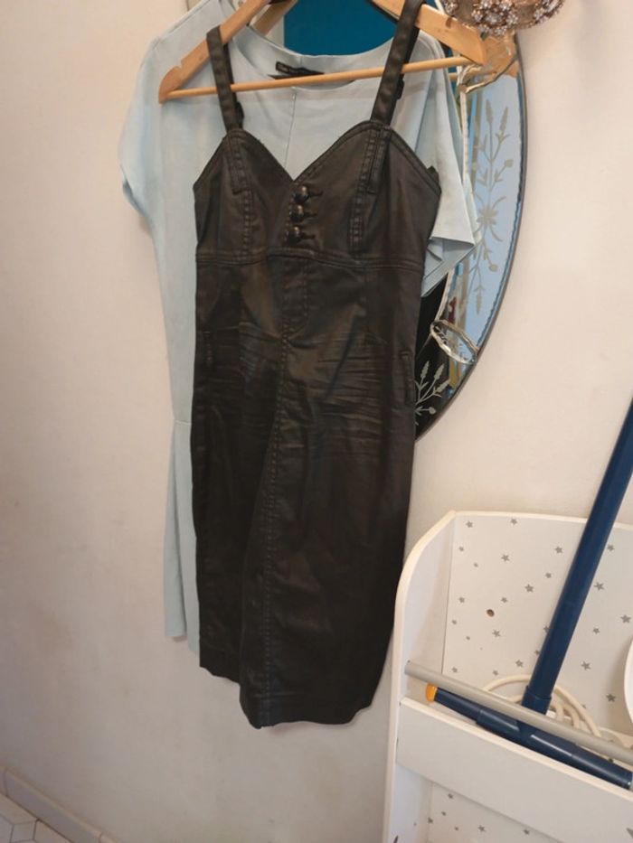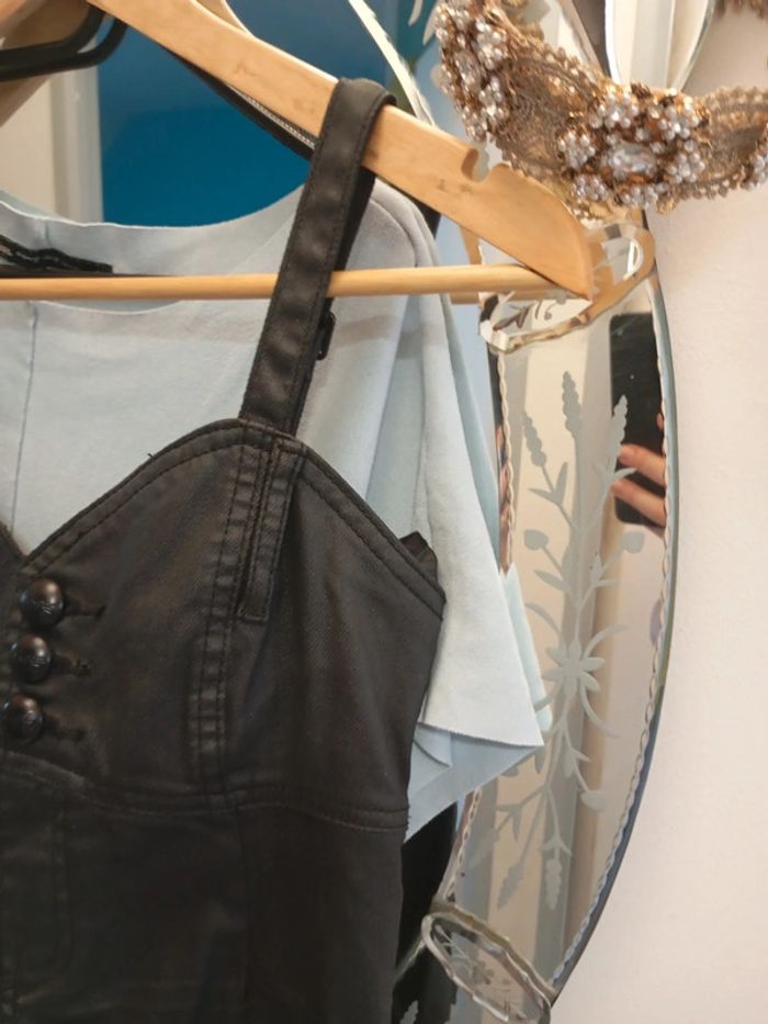 36;38 Noir effet cuir enduit Joli décolleté Bretelle réglable Petite fermeture côté pr l enfiler Lien de ceinture