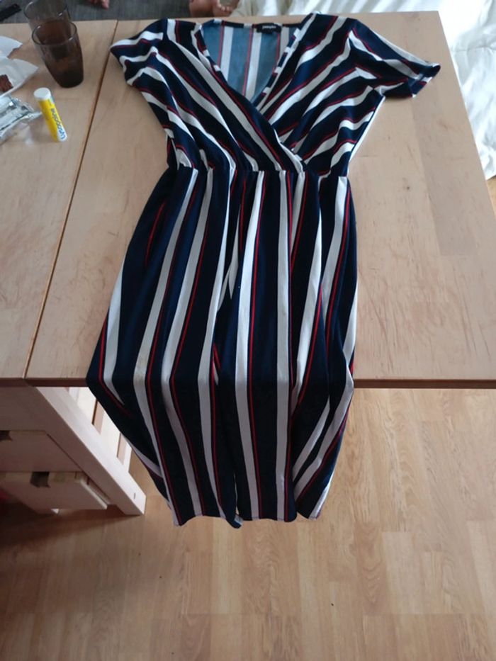Rayure bleu blanche liseret rouge Cache coeur Manche courte