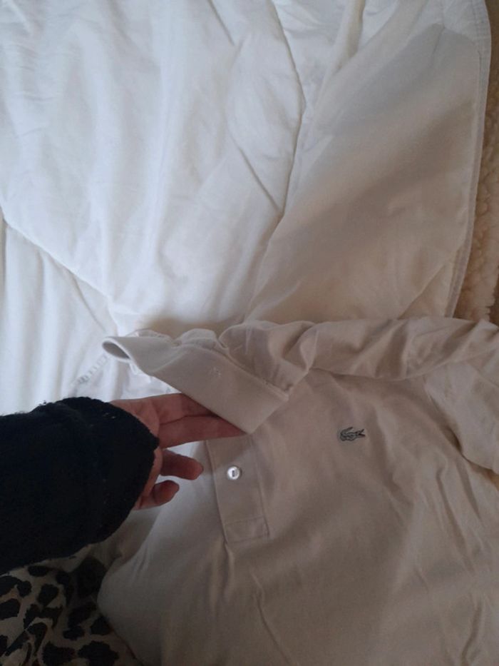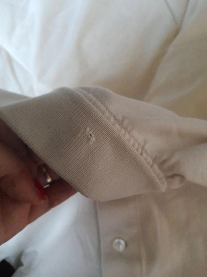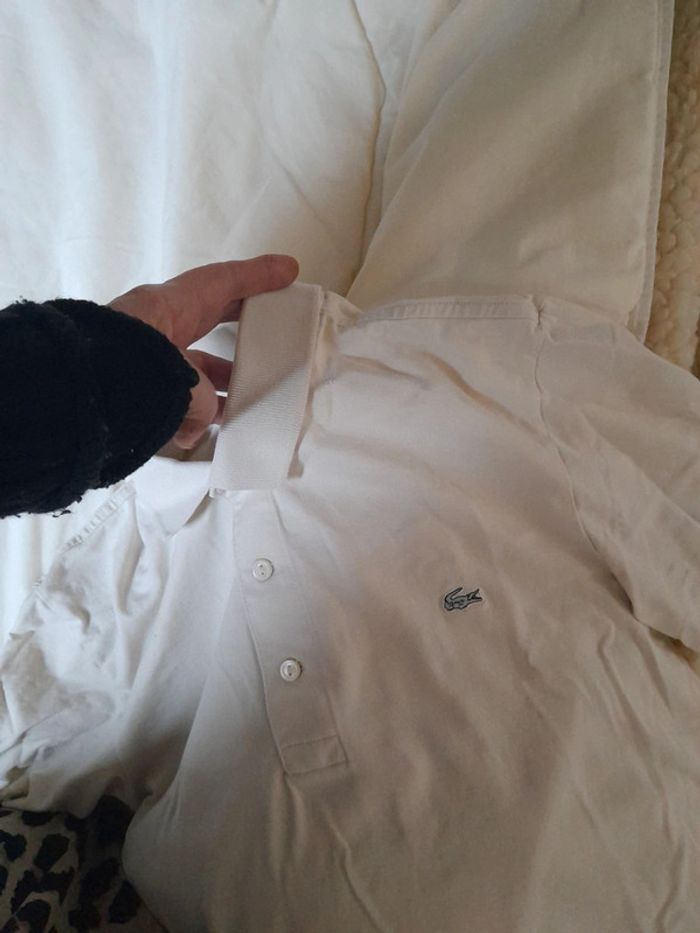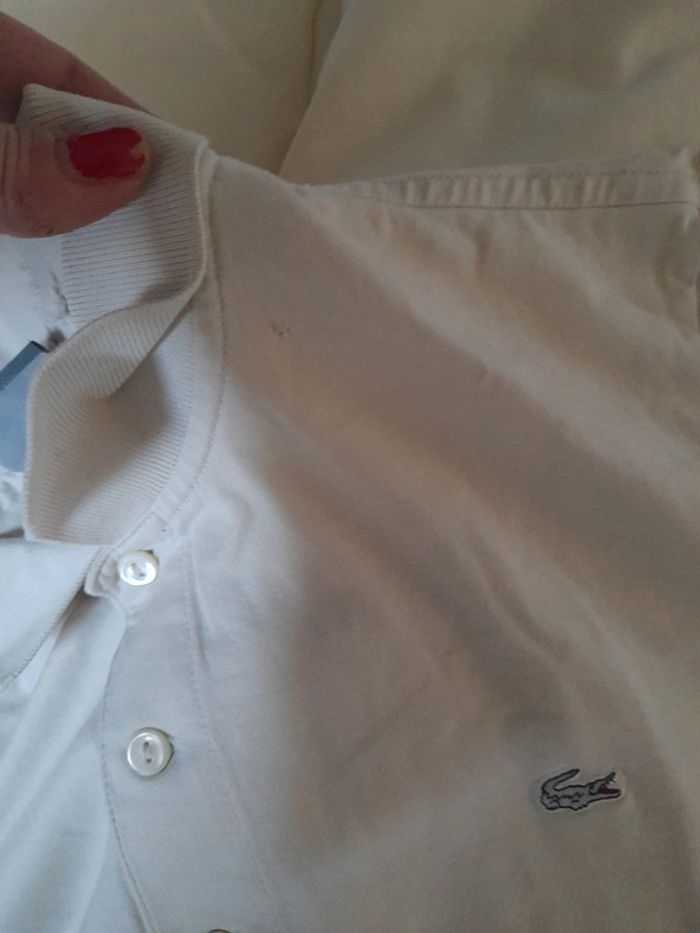 Voir photos 2 accro Peu voyant un derrière le col et un sur le côté Polo banc cassé Petite tâche peu voyante