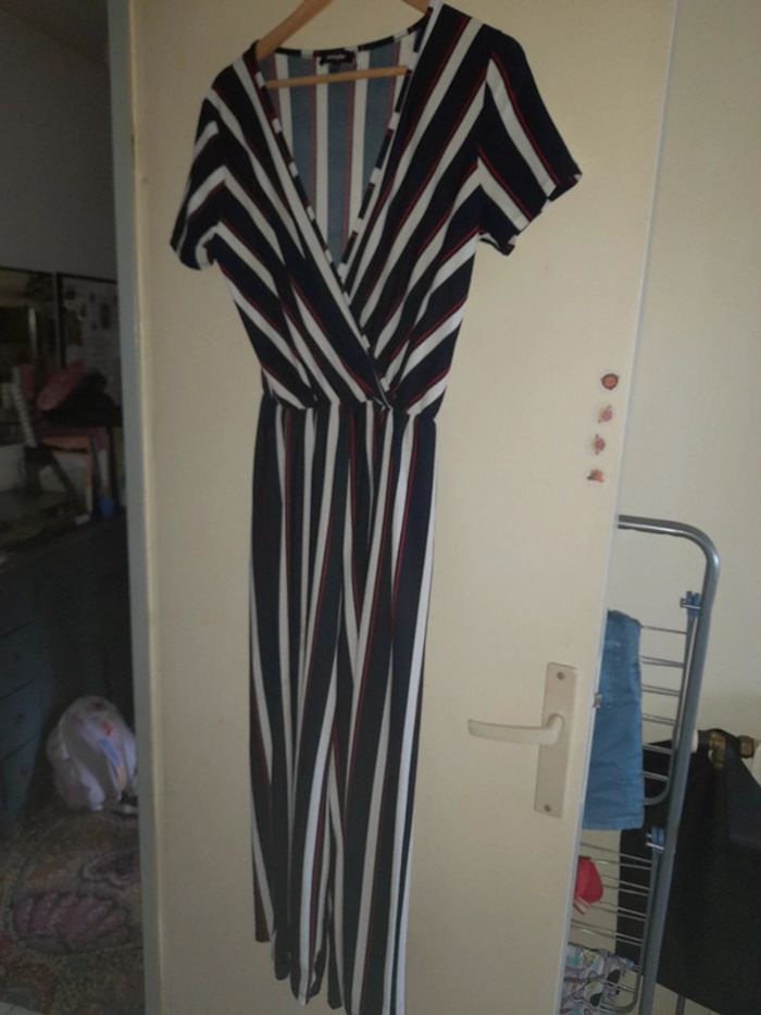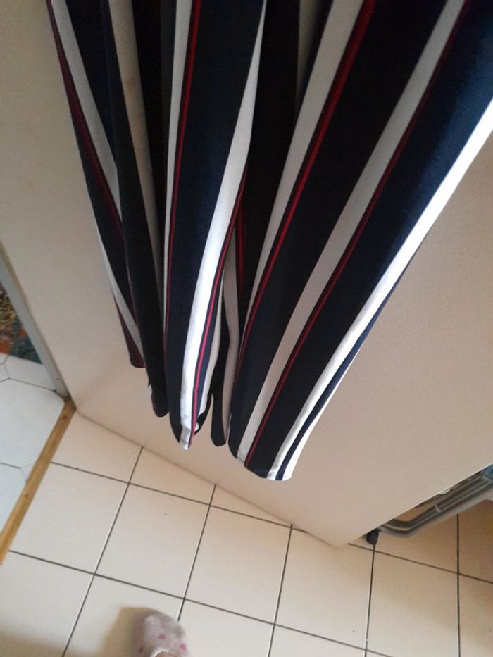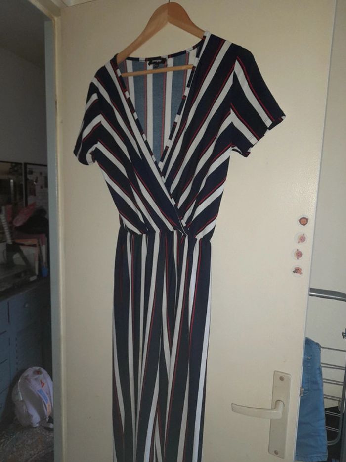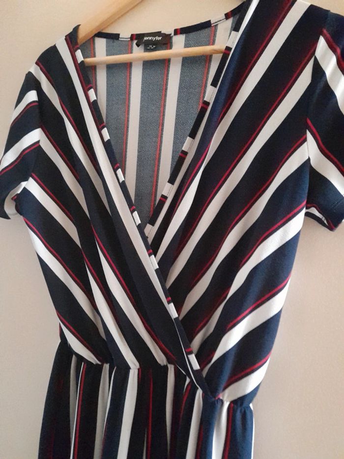 Model pantalon long Haut cache coeur manche courte Assez épais Infroissable Colori rayure rouge bleu marine