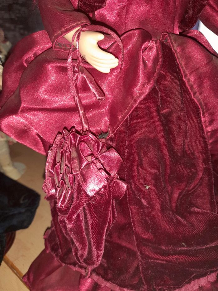 Robe bordeau très beaux détails Robe en velours bouffante Chapeau Sac a la main