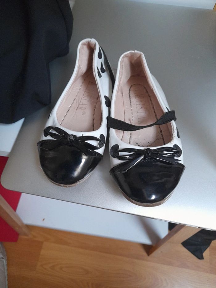 Ballerine fillette t 25 tbe Élastique sur le devant Noir blanches vernie Petit noeud sur le devant
