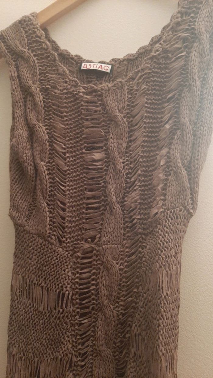 Bonjour je vend ce débardeur style destroy neuf jamais mi Couleur taupe Taille plutôt s