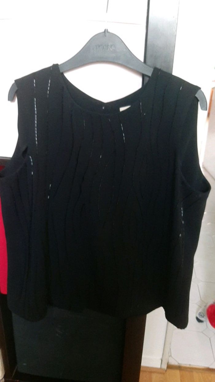 Bonjour je vend ce top 123en tbe Noir assez court sans manches Perles noire Idéal pour les fetes