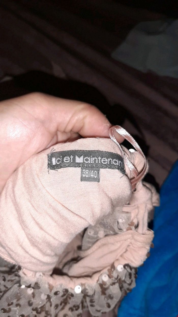 Bonjour je vend ce top en tbe à sequins Les liens s attachent au cou épaules nues Il est doubler Rose clair Marque la halles