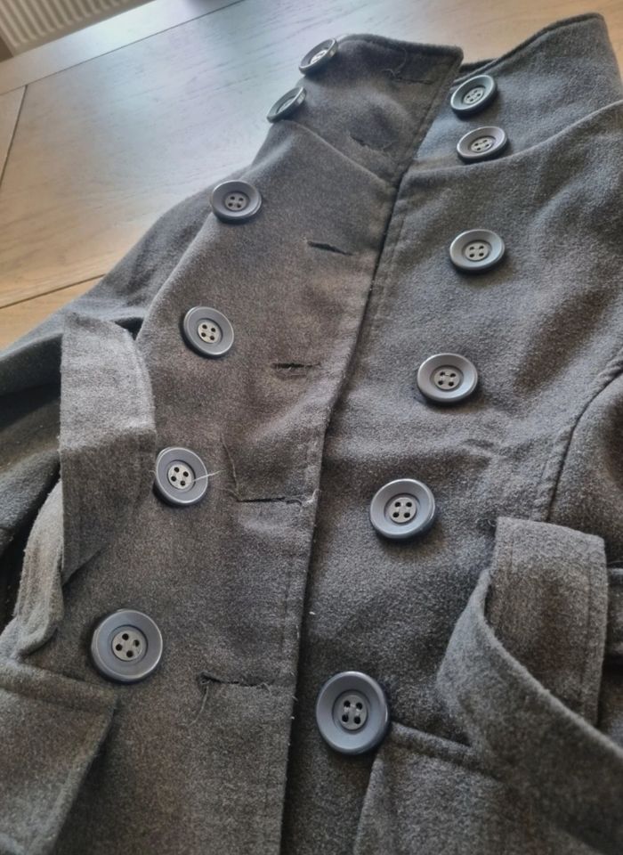 Fermeture à boutons deux fausses poches taille petit épaules 28cm,longueur 47cm
