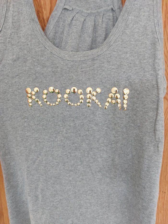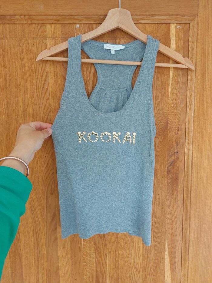 Débardeur dos nageur Kookai Taille 1, gris avec inscription en relief doré Très peu porté, en très bon état