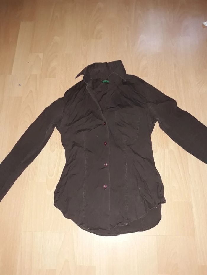 Chemise cintrée femme Benetton Marron Taille XS portée quelques fois, en très bon état Matière : 97% coton, 3% élasthane
