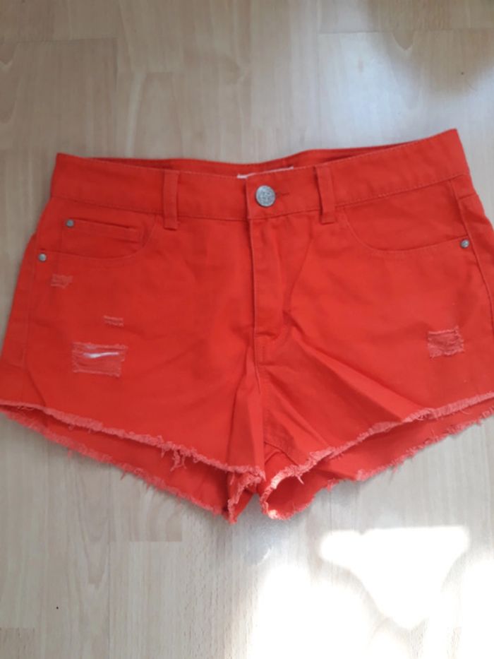 Short en jean rouge. Très peu porté, en très bon état. Marque américaine Copper key Équivalent taille 34