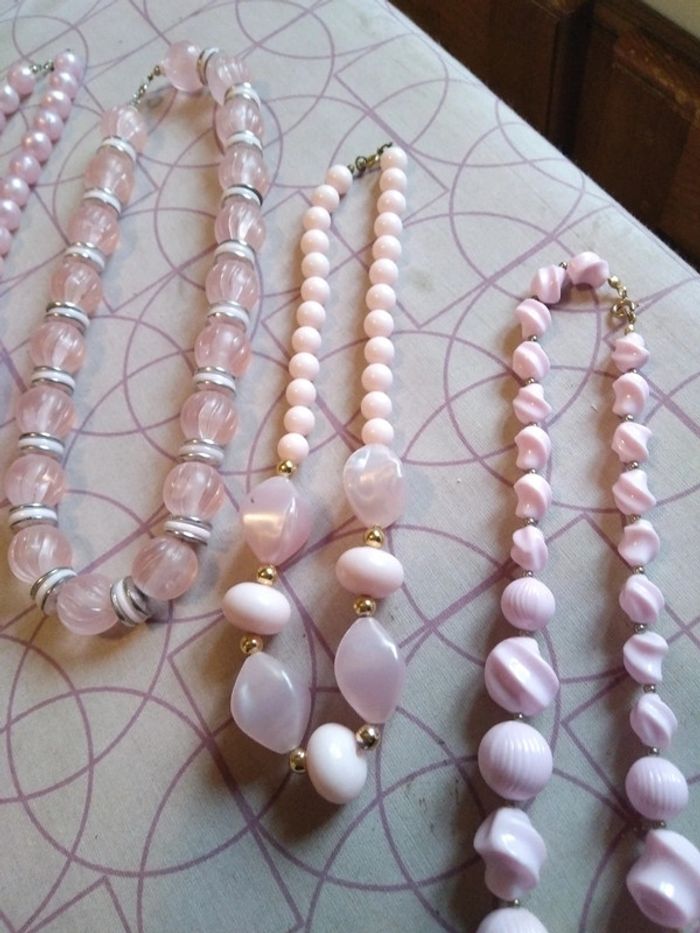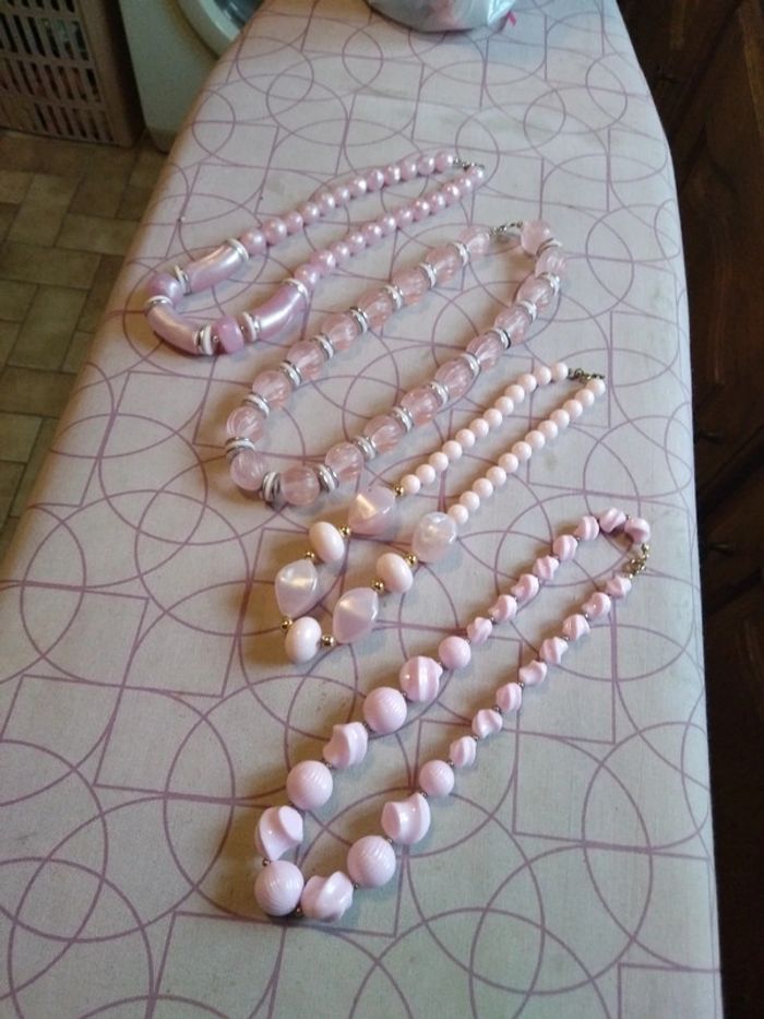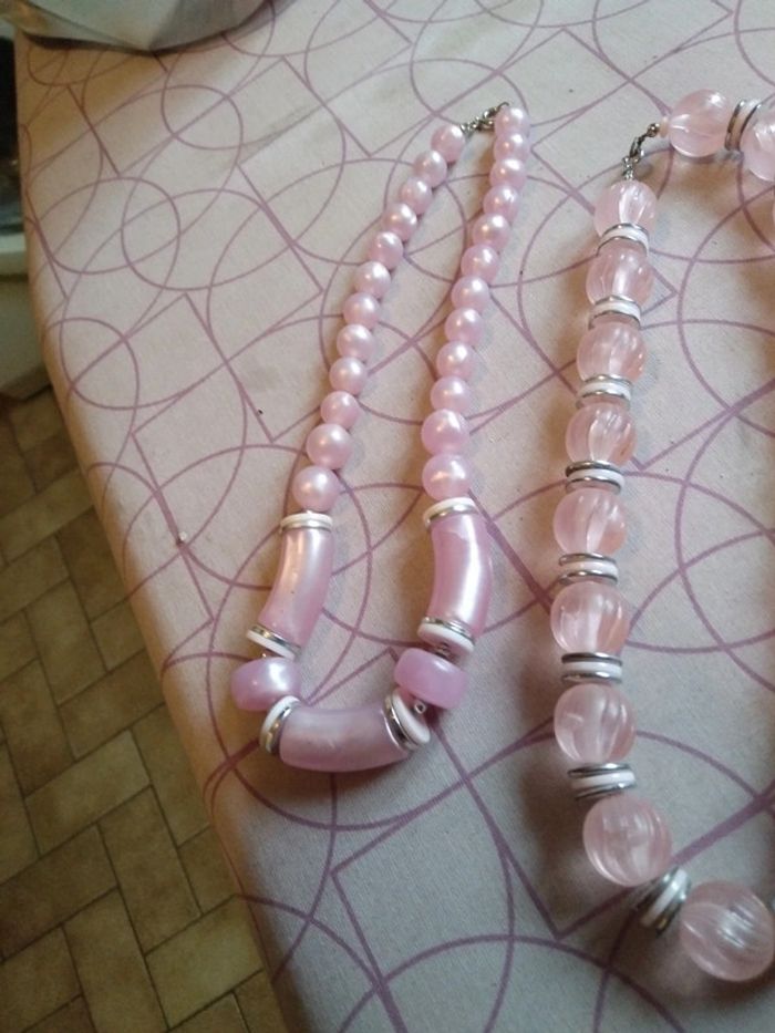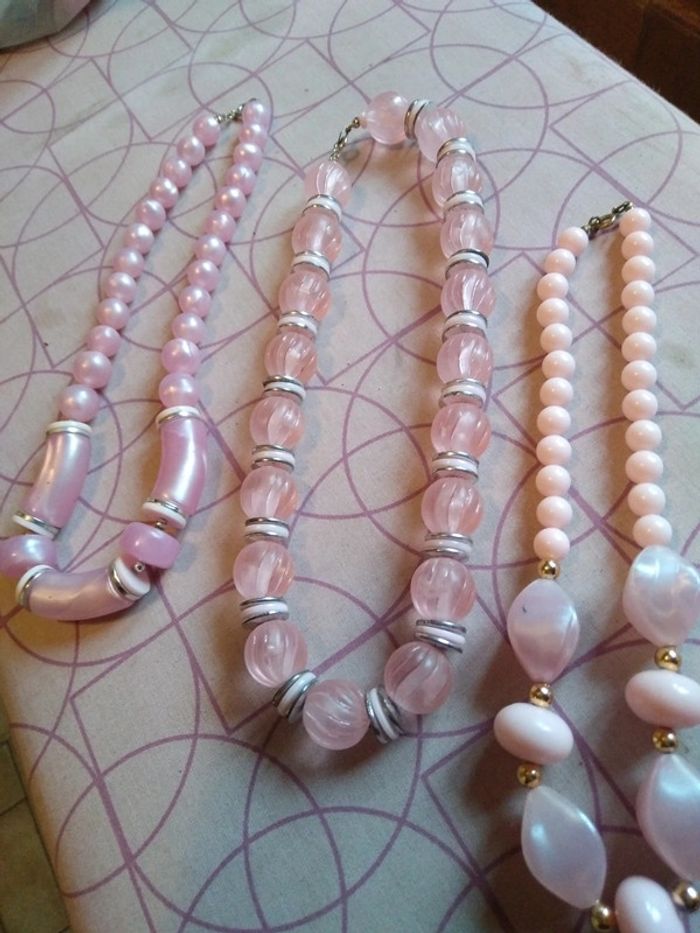 4 colliers perles rose - photo numéro 3