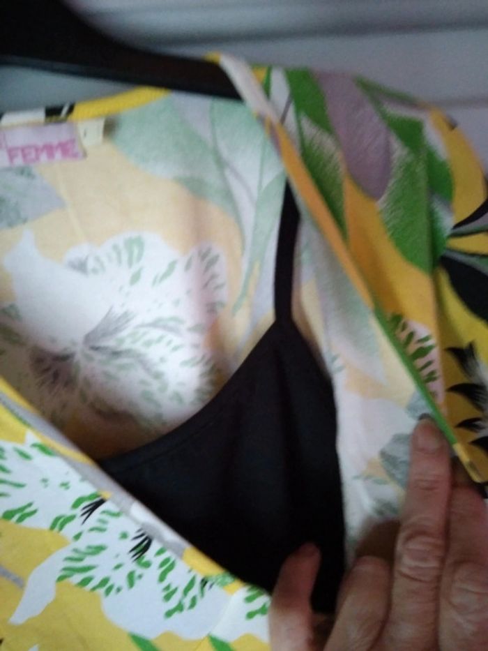 T-shirt d'été manches courtes doublé d'un bustier à bretelles noires tissu fraîche longueur 57 cm largeur sous aisselle 43 cm pas de photo portée