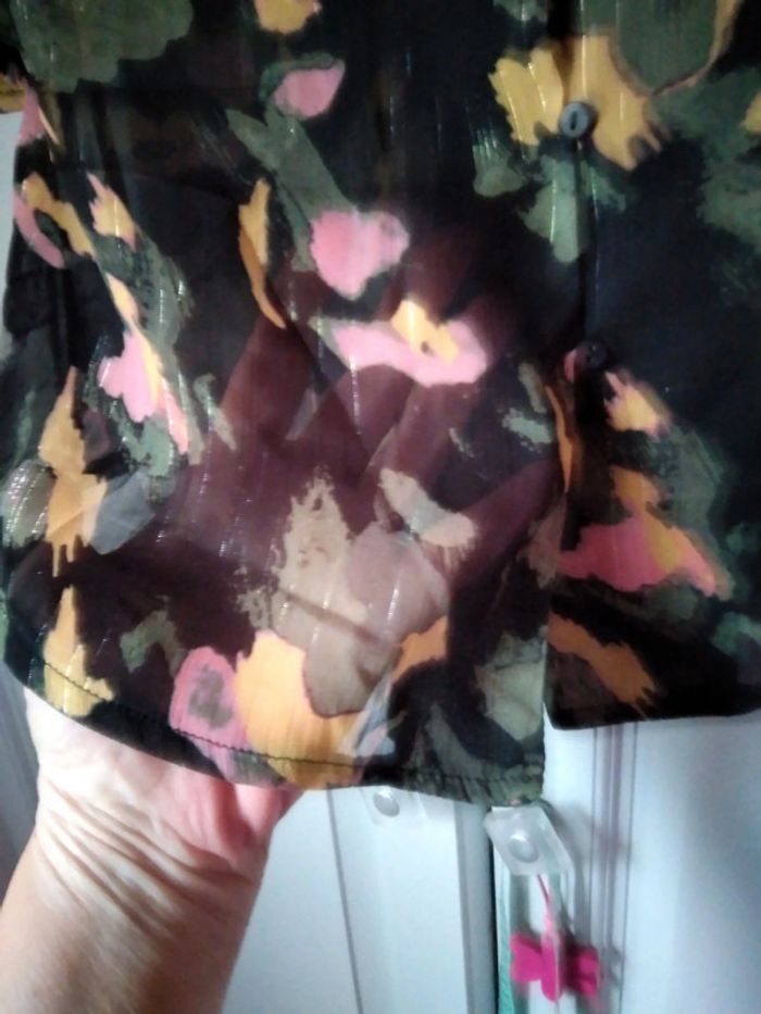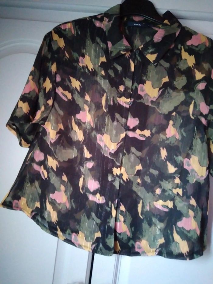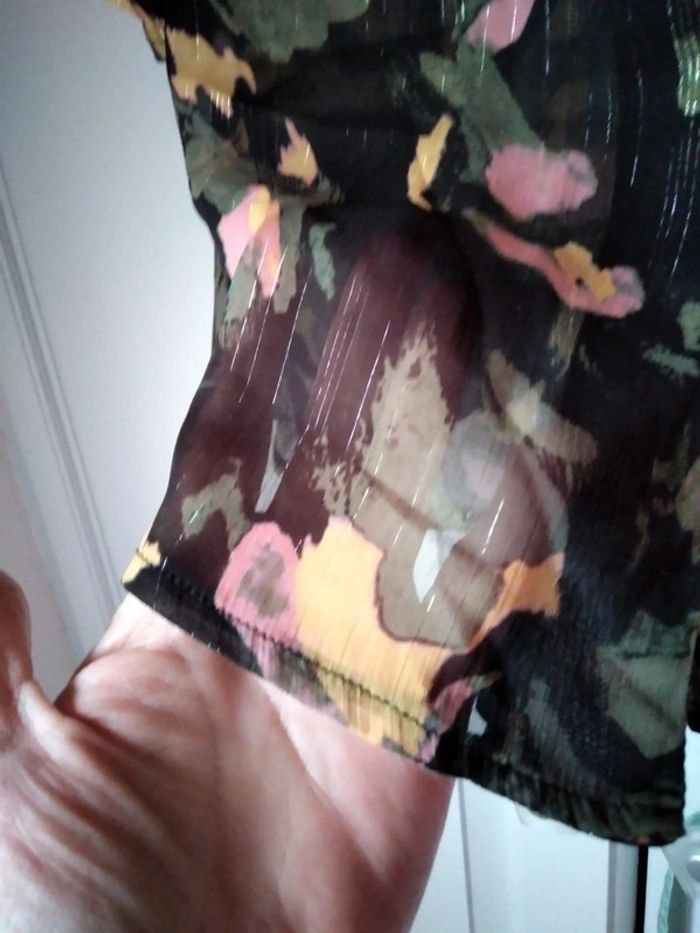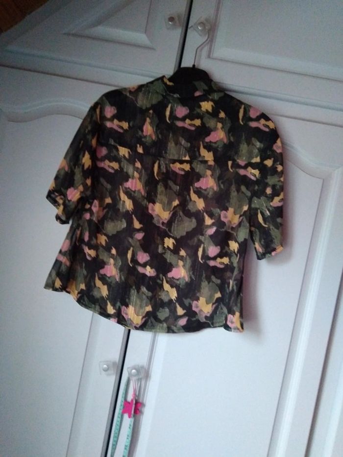 Mise en voile boutonnage petit pas élastique manche courte tissu petit liseré doré fin cette photo portée 54 cm largeur sous aisselle 48 cm
