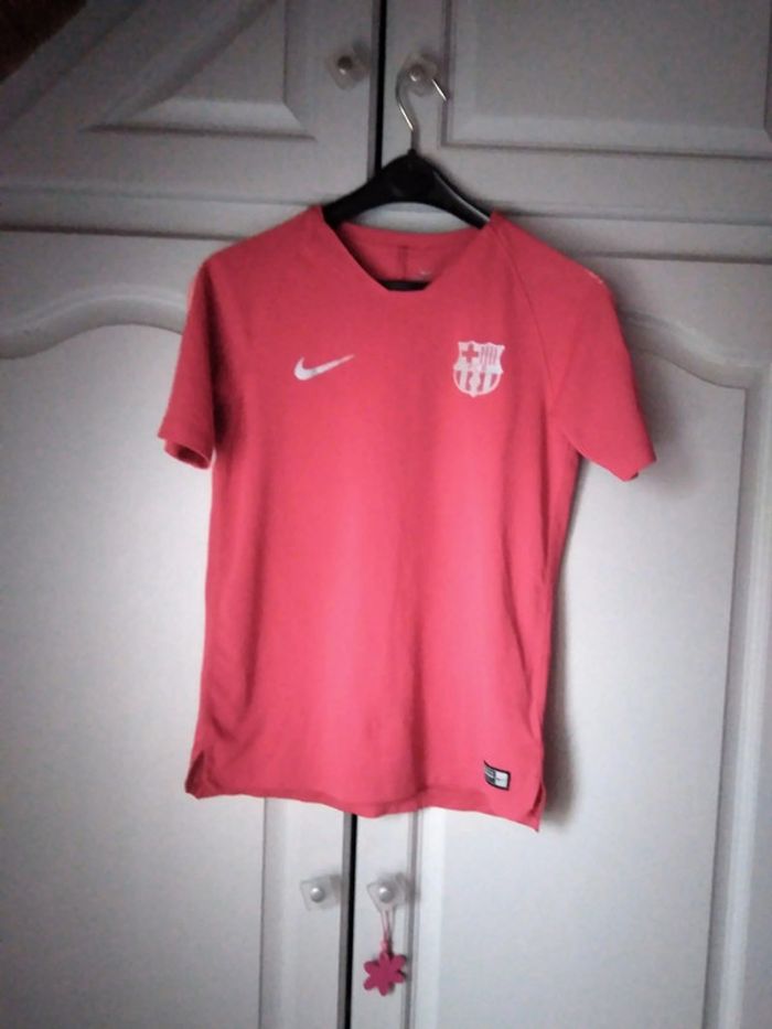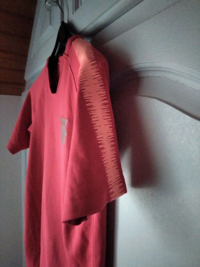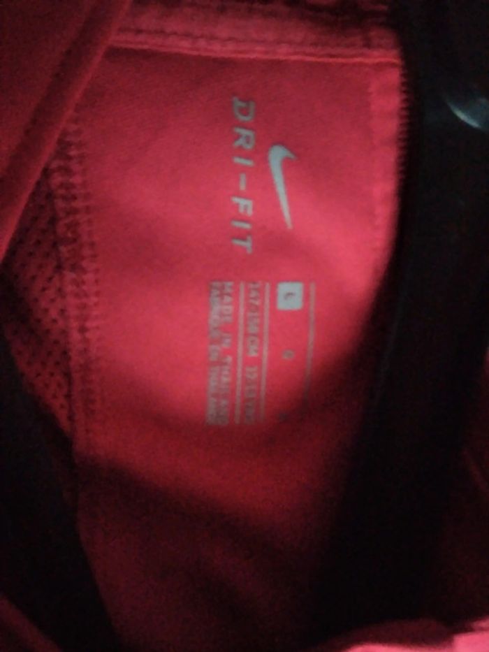Vent t-shirt NIKE fantaisie épaule zébrage saumon résil dans le dos très peu mis 4 photos portées taille 12 13 ans couleur rouge corail