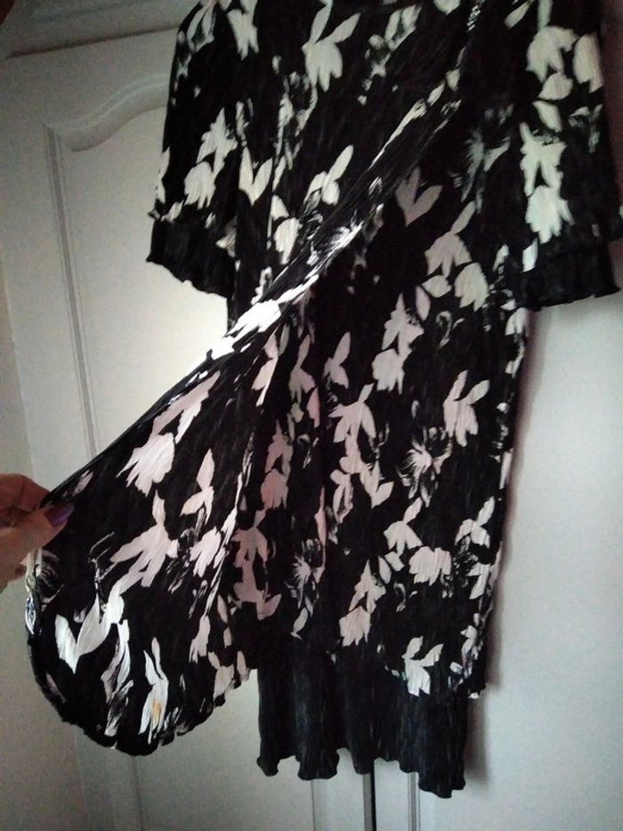 Vend robe plissée de fête double tissu portefeuille se ferme dans le dos avec un petit bouton joli nœud sur le côté réhaussée de strass longueur 1 m 05 largeur sous aisselle 53 cm pas de photo portée