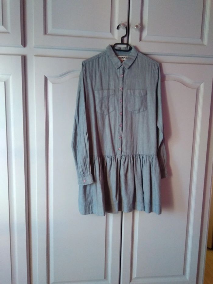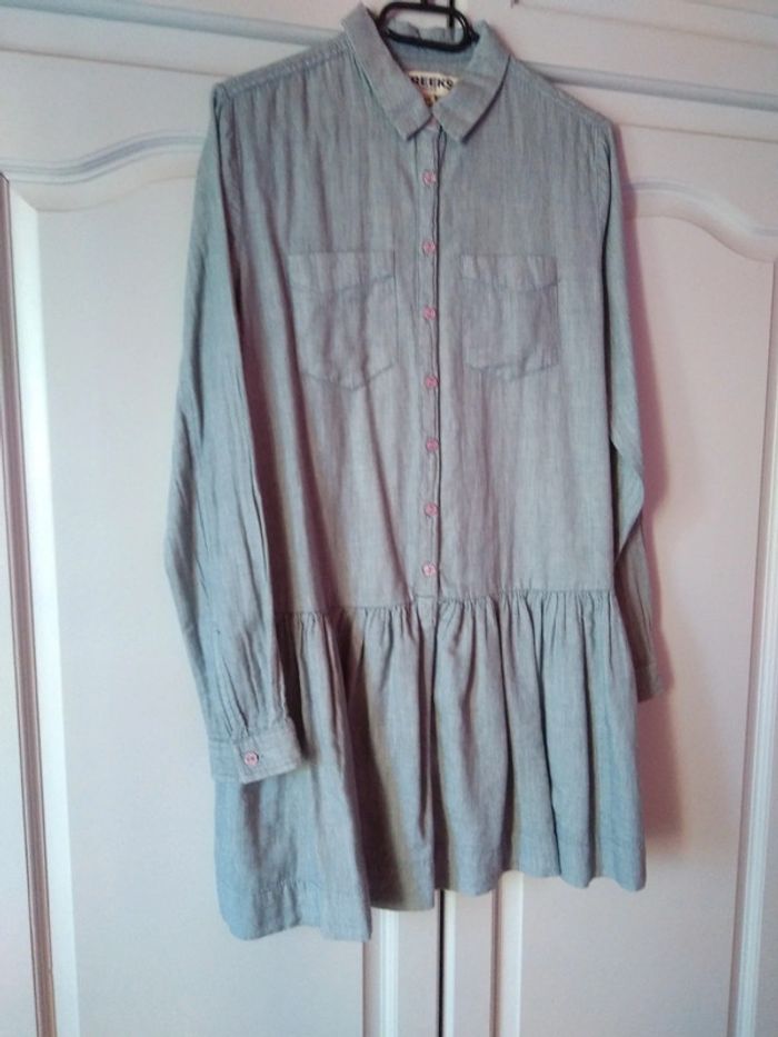 Vent jolie tunique longue tissu effet Jean manches longues bouton d'avance en cas de perte très peu mise pas de photo portée étiquette mentionné du 36 plutôt taille 38 longueur 84 cm largeur sous aisselle 48 cm