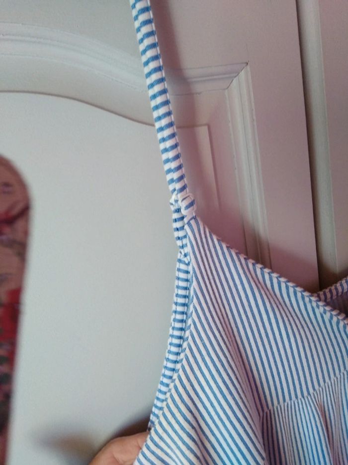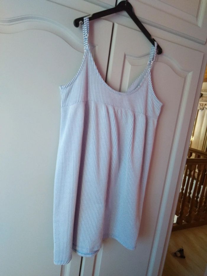 Vend robe rayée à bretelles réglable grosse longueur sans bretelle comprise 76 cm largeur sous aisselle 51 pas de photo porter