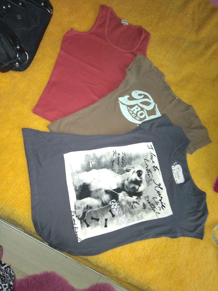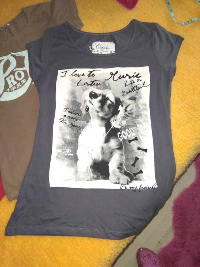 Vend lot de 3 t-shirts rouge marque Ethan marron plus d'étiquette armand thiery et gris avec le chien cache cache tous les trois taille 38