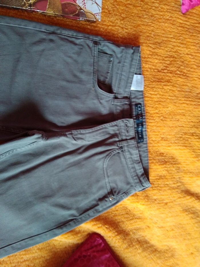 Vends pantalon avec passant pour ceinture fermeture éclair métal avec bouton métal longueur de jambes 81 cm tour de taille 84 tissu doux