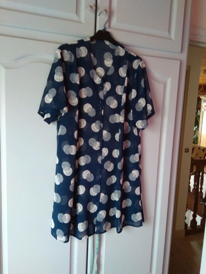 Vd robe tt en voile 2 fentes côtés longueur 94cm largeur ss aisselles 55cm pas de photo portée plus d'étiquette coupé trop voyante vu que c'est du voilage