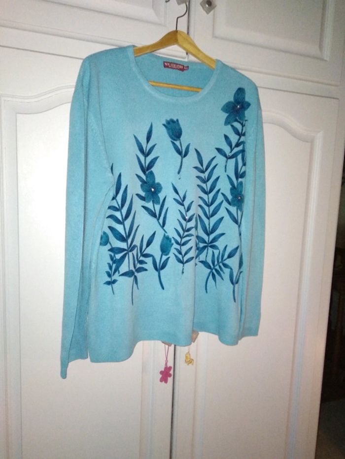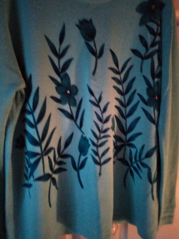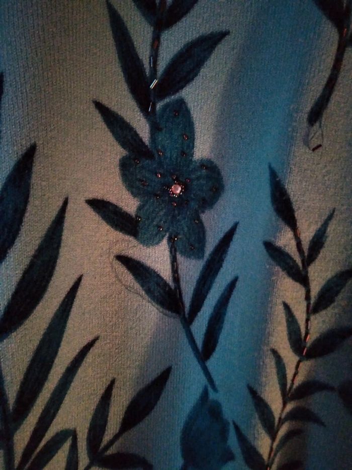 Vd pull fin fleurs brodés perles 2 fentes côtés longueur 71cm largeur sous aisselle 61cm pas de photo portée