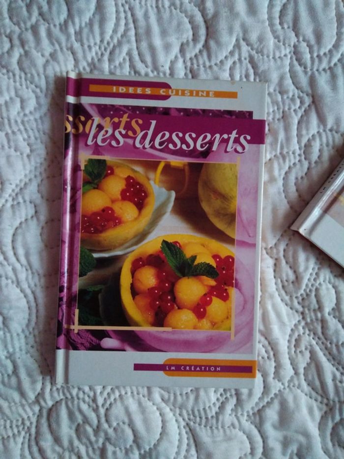 Vend lot de 3 livres cartonné les desserts les tartes et les gâteaux feuilles glacées comprend chaque livre 90 pages