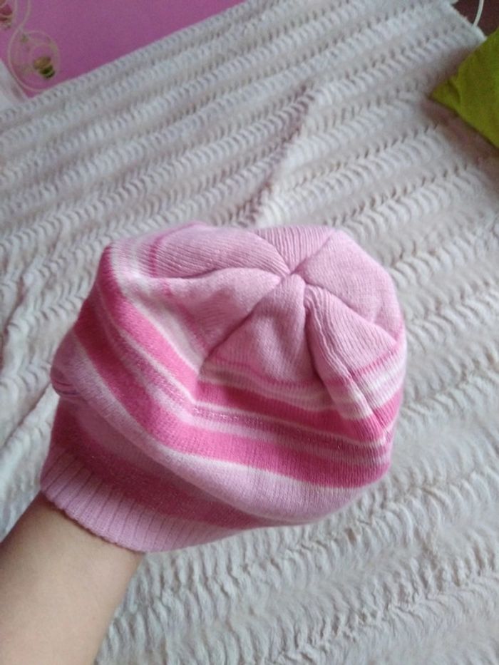 Vend bonnet rose avec perle en cœur cousu jamais mis taille 54
