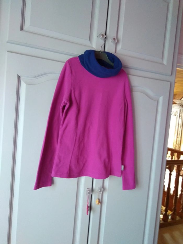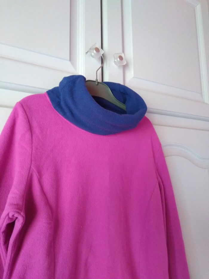 Vends joli polaire de couleur col roulé bleu le reste en rose fushia pas de photo portée