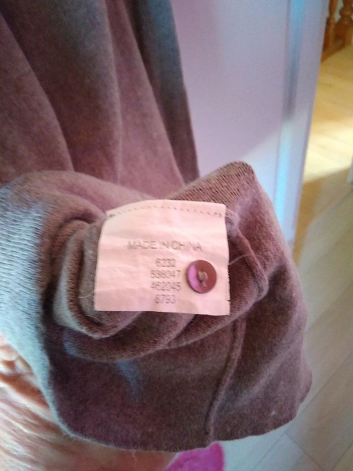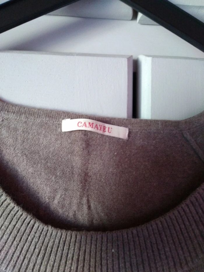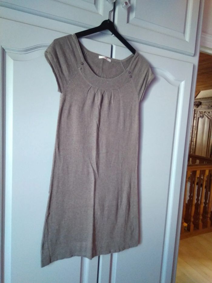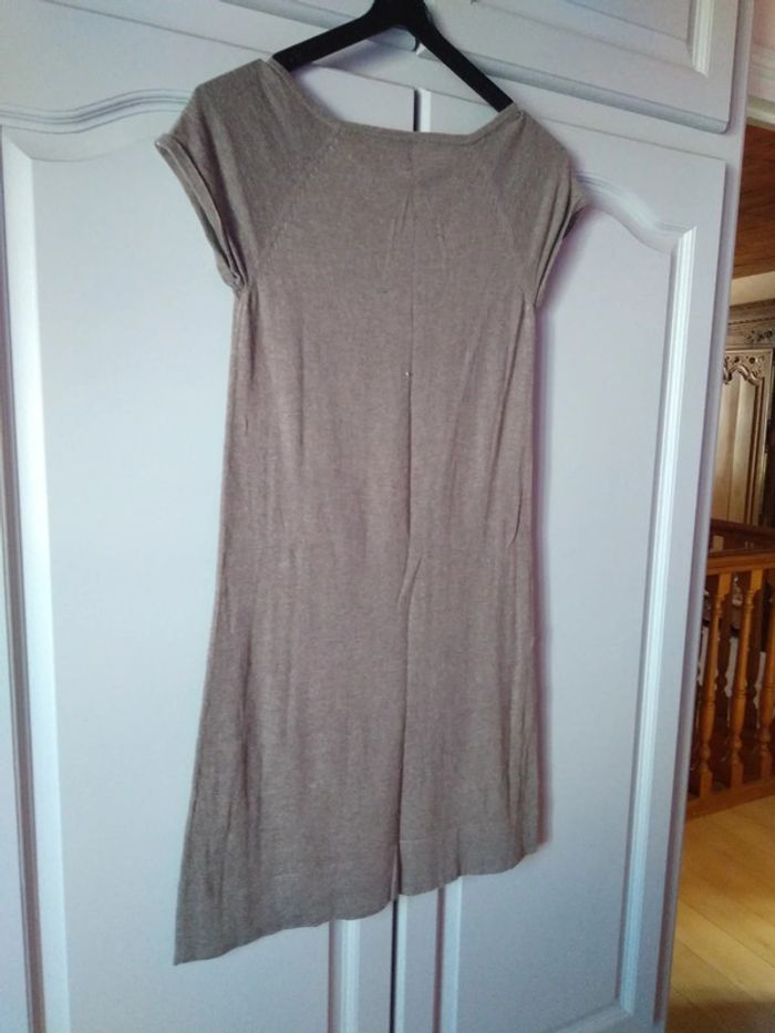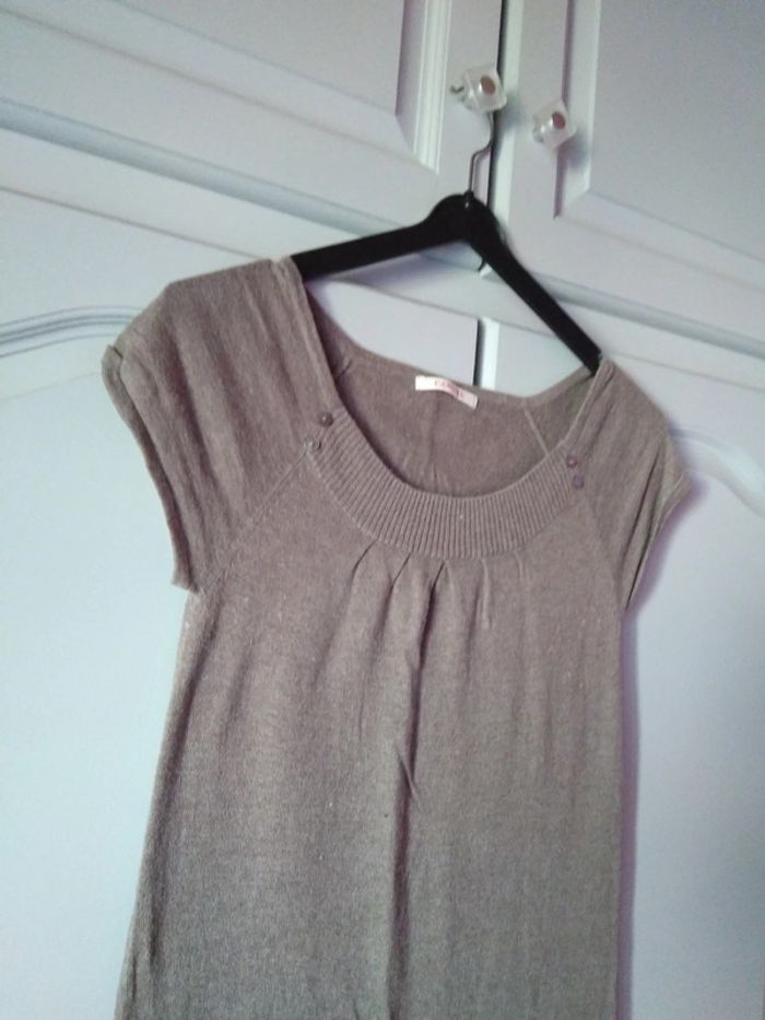 Vend pull long matière douce petite manche courte avec revers petit bouton nacré de chaque côté + 1 en cas de perte longueur 91 cm pas de photo portée