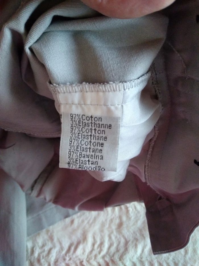 Pantalon droit tresse fantaisie avec boutons et boucles sur la taille de ceinture de poche plaquée sur le côté se ferme avec une petite fermeture et crochet longueur entre jambes 82 cm longueur totale un mètre 3 largeur de taille 40 cm pas de photo portée mis 1 fois