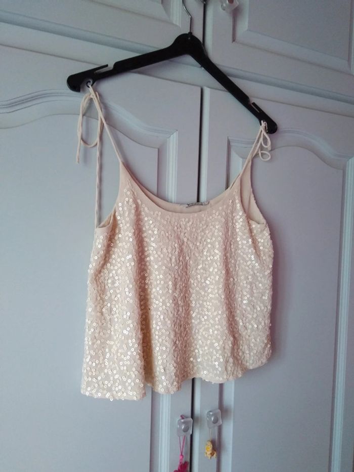 Vend jolie top court broder perle nacre tt double jamais mis ppp