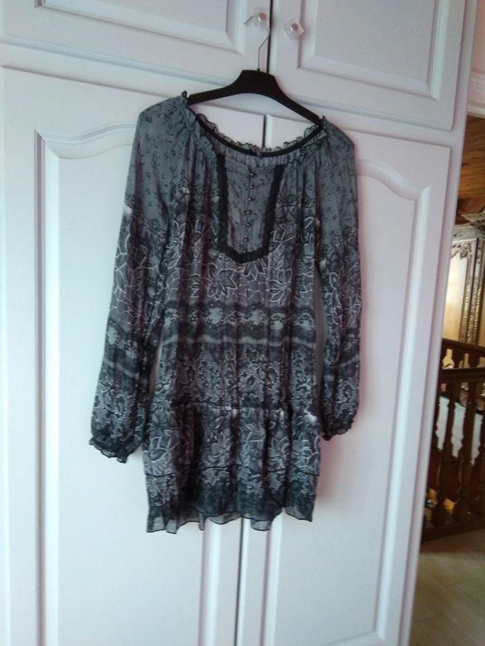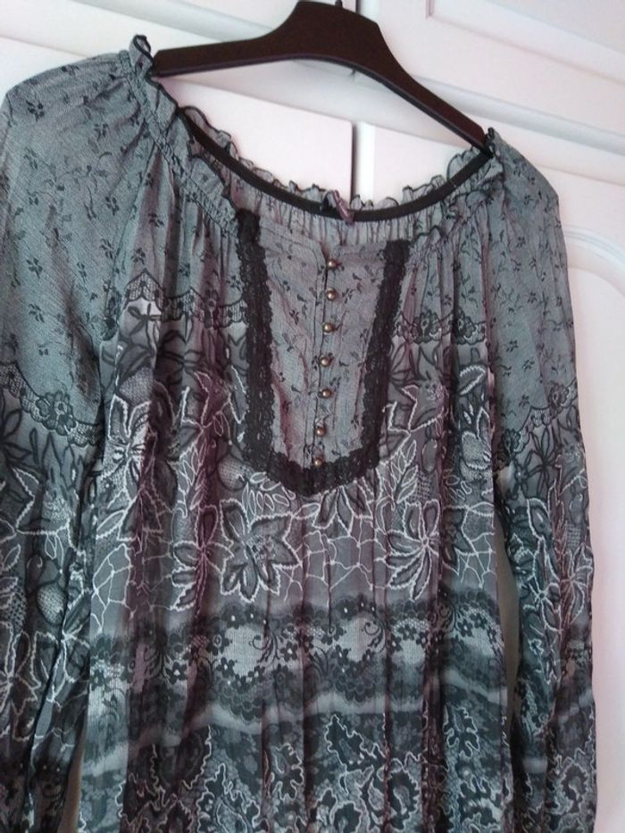 Vend jolie tunique longue manche longue en voile petits boutons fantaisie devant pas doubler longueur 86 cm largeur sous aisselle 48 cm pas de photos portées