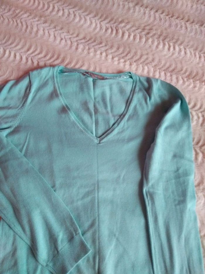 Vend pull fin turquoise col en v très peu mis pas de 📷portée
