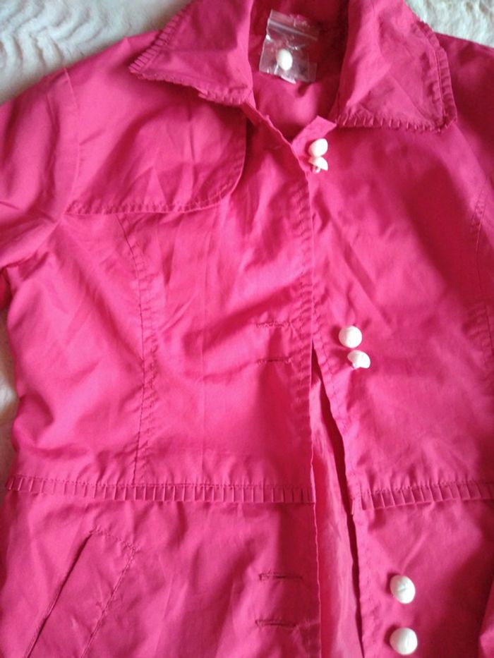 Vends manteau imperméable couleur plutôt Coralie foncé bouton en plus en cas de perte de poche plaquée en biais avec une petite marque dans le haut de la poche voir photos