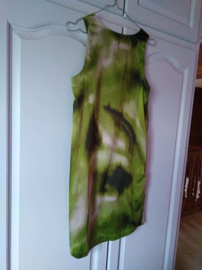 Vend robe d ete légère agréable à porté tissu satinéfermeture éclair discrète ss bras longueur89cm largeur ss aisselles 42cmpas de photo portée