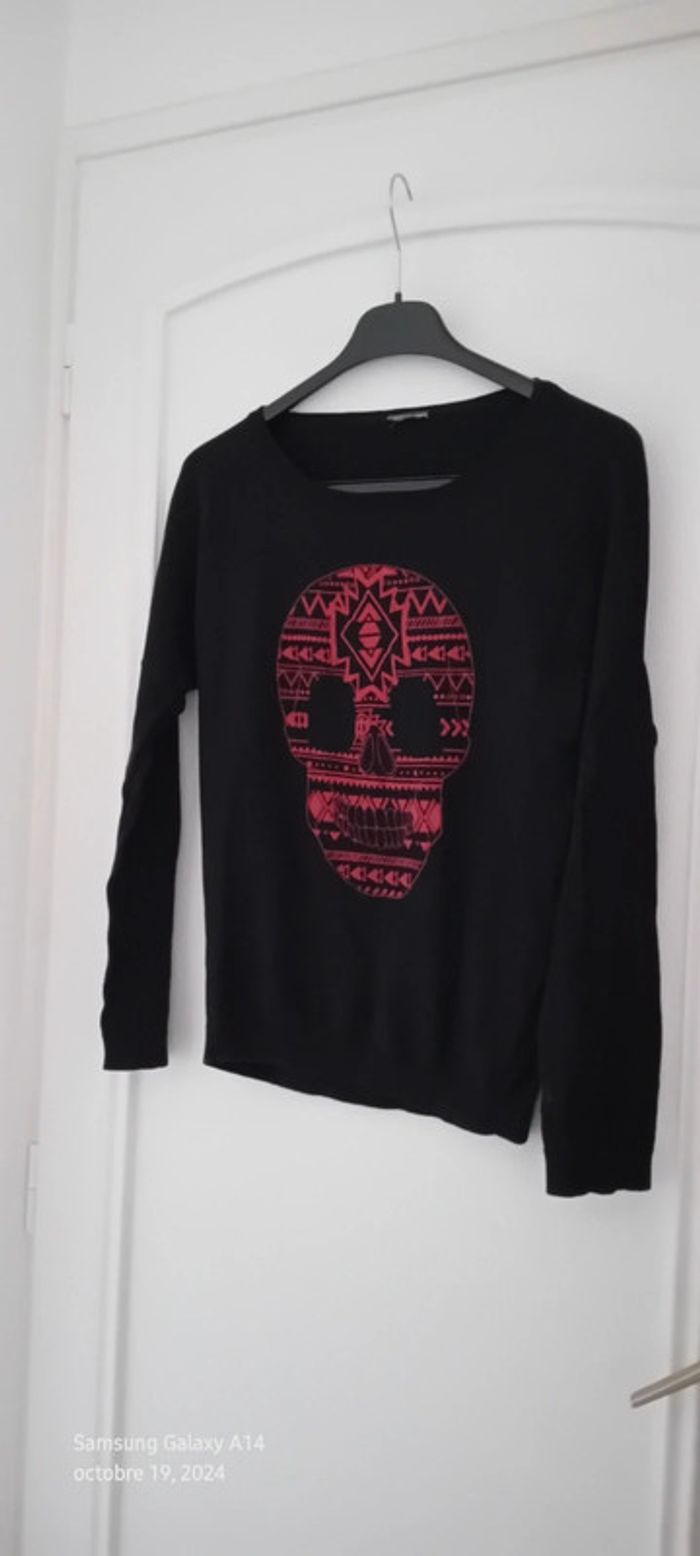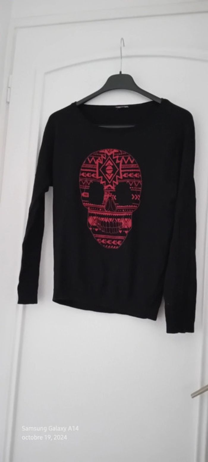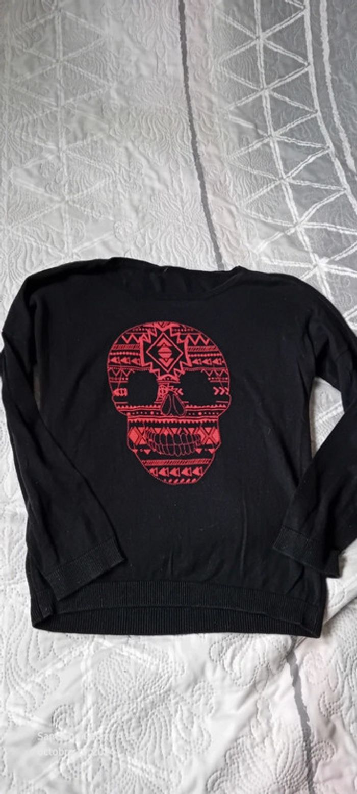 Pull long fin tête de mort dia de la muerte noir fille 12 ans kiabi - photo numéro 1