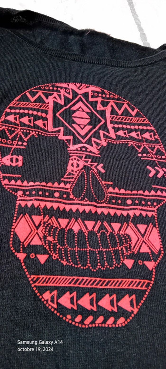 Pull long fin tête de mort dia de la muerte noir fille 12 ans kiabi - photo numéro 5