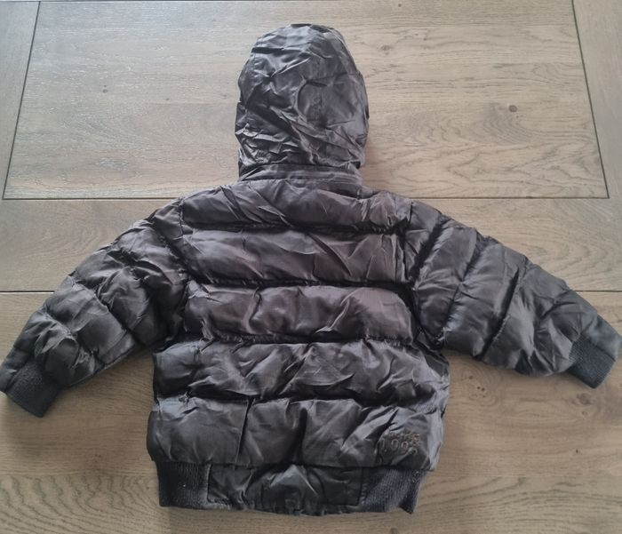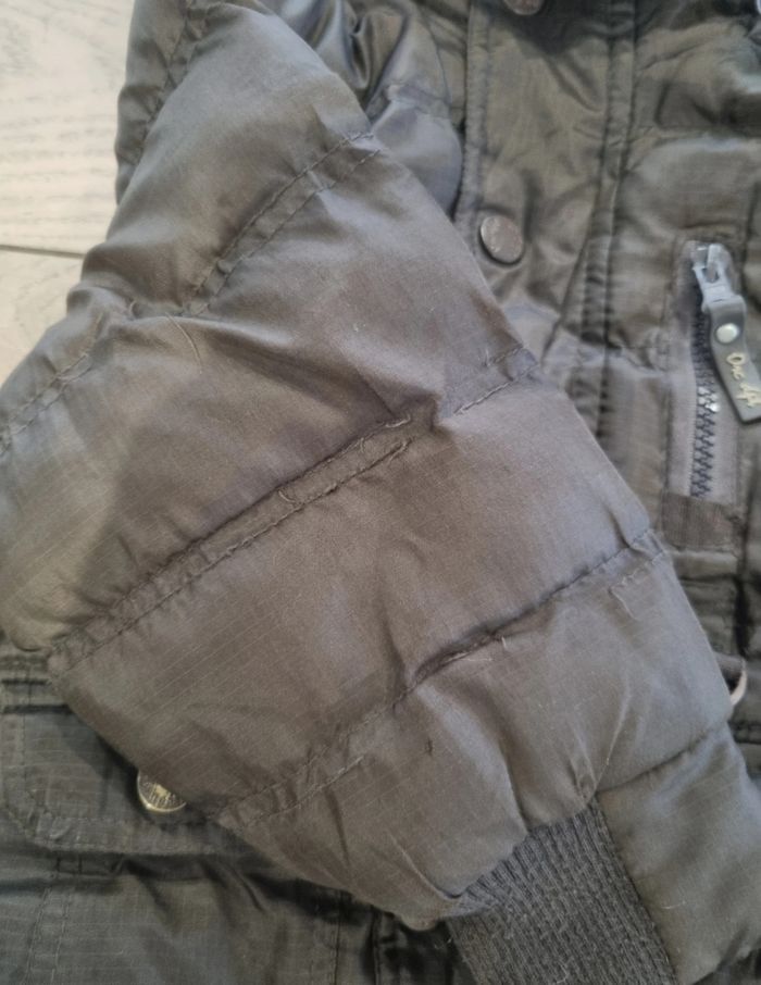 capuche amovible.Légèrement usé au niveau des pressions et des tirettes.Manque quelques surjets sur une manche.Mais la veste est dans un bon état général .Intérieur doux manche matière doublure. Dernier articles en taille 2ans