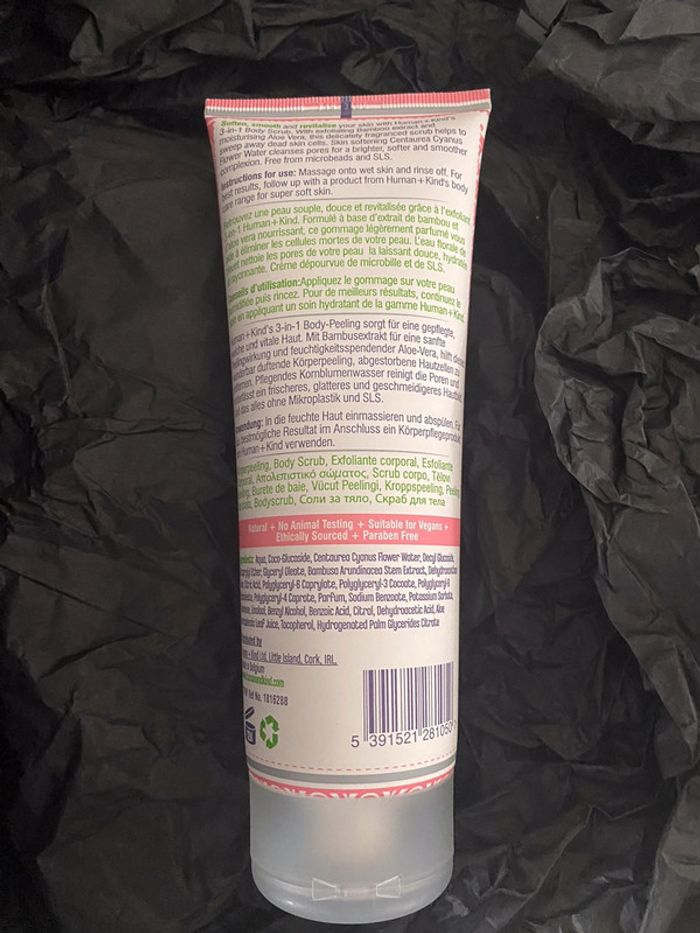 Gommage pour le corps 3 en 1 : exfolie, élimine les cellules mortes de la peau et procure une sensation de douceur ; Laisse la peau douce, souple, revitalisée et légèrement parfumée ; Convient à tous les types de peaux ; Soin vegan et formulé avec des ingrédients d’origine naturelle ; sans paraben, sans SLS, non testé sur les animaux ; Format vente de 200 ml ; Valeur : 15,99 € ; Article neuf jamais utilisé, jamais ouvert ; #emma7405soin #body #corps #soinducorps #bodycare #bodycareroutine #skincare #skincareaddict #routinecorps #ritueldesoin #beaute #beauty #beautyaddict #cosmetics #cosmeticsaddict #cosmetiques #clean #cleanbeauty #beauteclean #natural #naturel #beautenaturelle #naturalbeauty #ingredientsnaturels #naturalingredients #soinducorpsnaturels #sansparaben #parabenfree #criueltyfree #slsfree #nontestesurlesanimaux #sanssls #gommage #gommagecorps #bodyscrub #gommagecorpstroisenun #peausouple #peaudouce #peaurevitalisee #peauparfumee #allskintypes #pourtoustypesdepeaux #fullsize #formatvente #formatstandard #exfolie #sensationdedouceur #peauxmortes #humanandkind #humanandkindskincare #humanandkindbodyscrub #humanandkindgommagecorporel #cadeau #ideecadeau #gift #giftideas