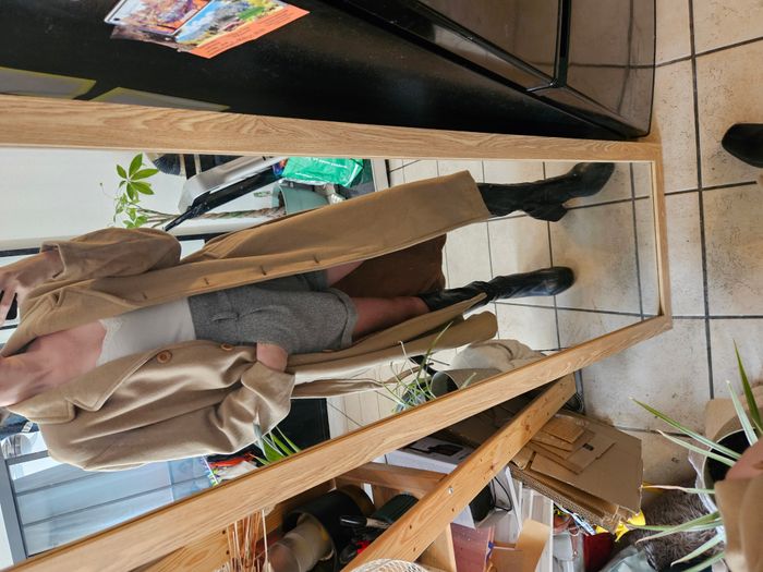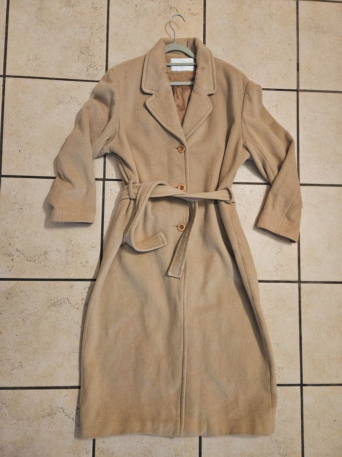 Manteau long beige Taille XL Marque Caroll Paris En excellent état et super qualité, matière très douce et agréable Manteau doublé