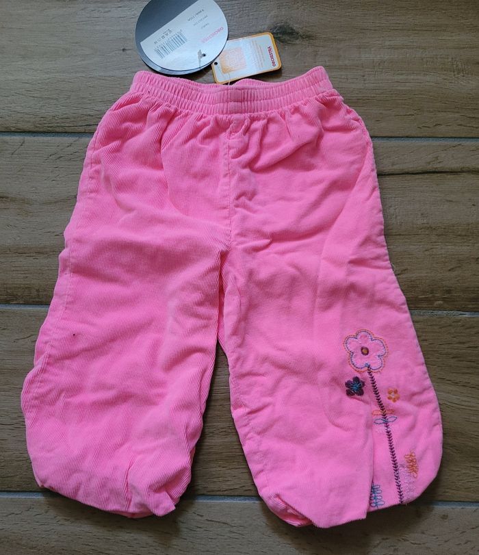 Lot de 2 pantalons neufs étiquetés un rose en velours orchestra avec un petit motif coloré brodé sur le devant, et un gris Disney Marie, intérieur doublé polaire rose.