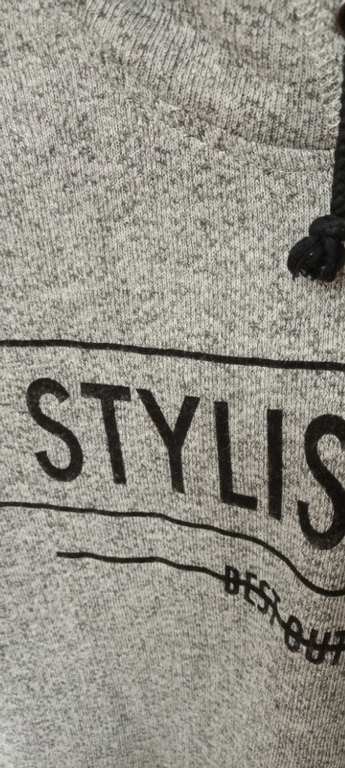 pull fin gris à capuche 59% polyester 41% coton