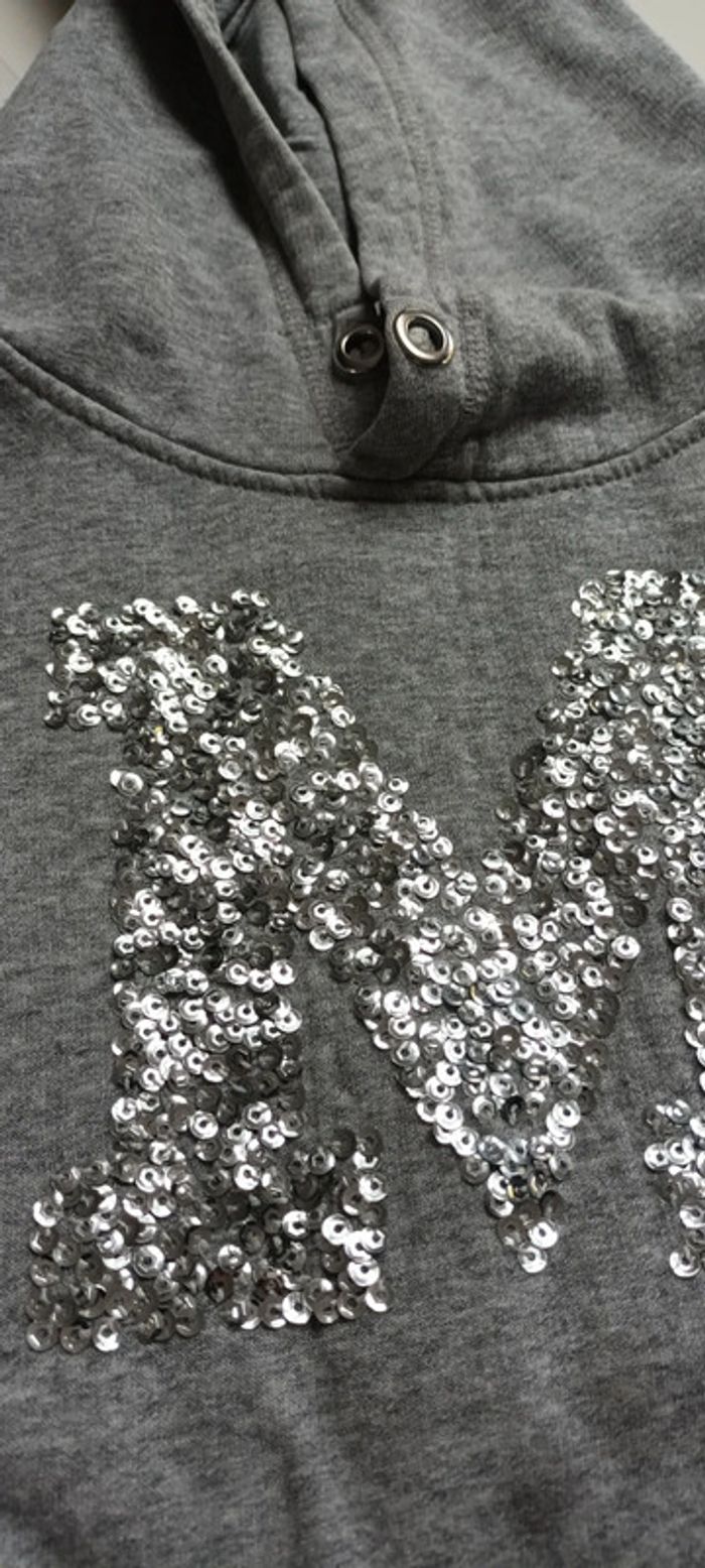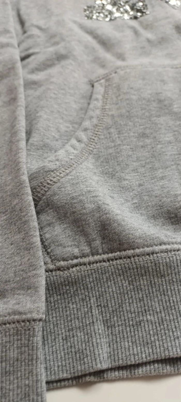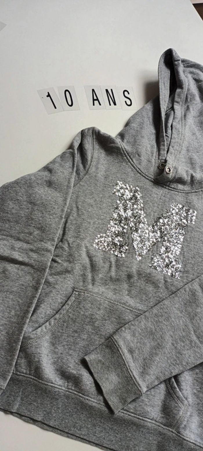 Sweat capuche gris avec lettre en sequins Poche sur le devant