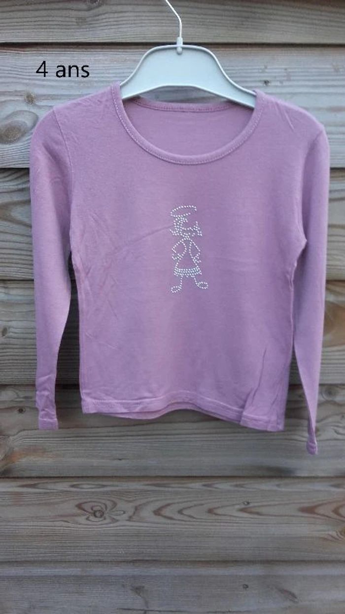 t-shirt mangues longues avec strass couleur vieux rose 4 ans