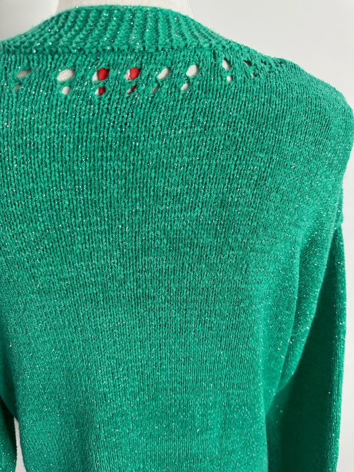 Pull oversize en maille ajourée vert et argenté Miss by Captain Tortue T1 36 S - photo numéro 6