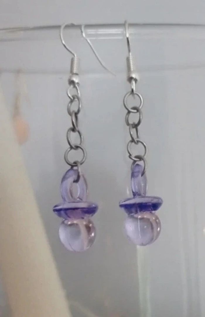 Ces boucles d'oreilles sont réalisées par mes soins 💕 Totoches violet, apprêts en acier inoxydable couleur argent.