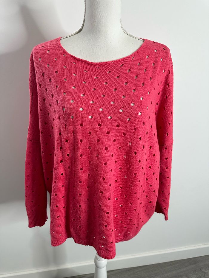Pull oversize angora en maille ajourée rose T38 M - photo numéro 1